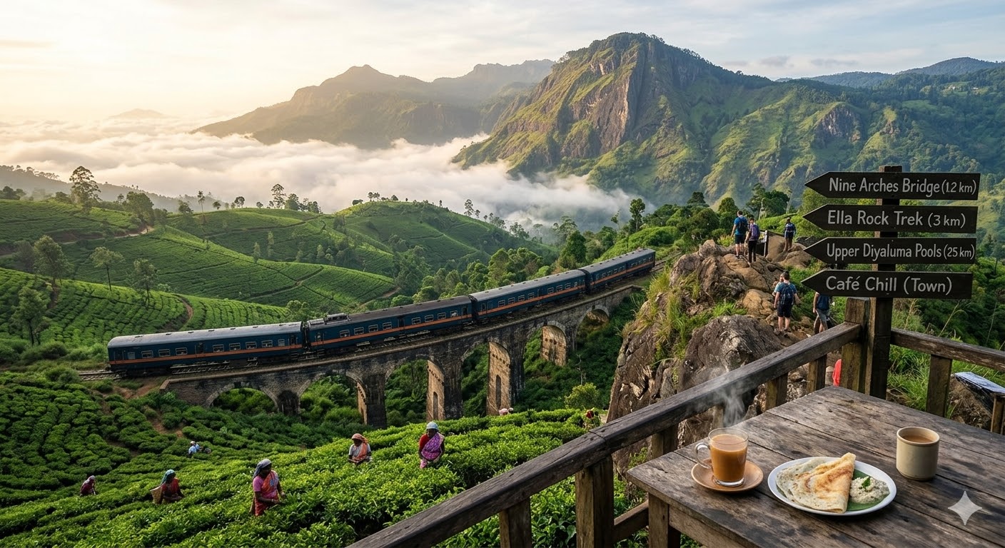 But Ella is more than a postcard. It’s a feeling. It’s the sensation of misty air brushing your face while you stand on a mountaintop, the rhythmic click-clack of a colonial-era train crossing a green valley, and the deep satisfaction of a hot thosai after a day of hiking. In this guide, we explore the distinct components that make Ella the essential heart of the Sri Lankan highlands.